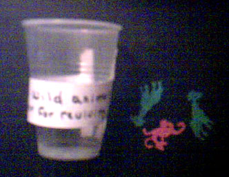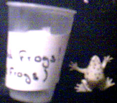 with plastic frogs and is labeled "Captured Baby Frogs".